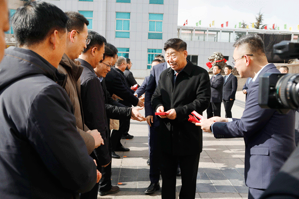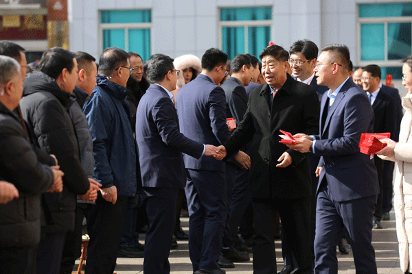 在方圆集团2025年春节开工动员大会上,集团董事局主席高秀为全体员工派发新年红包,送上新春的祝福。