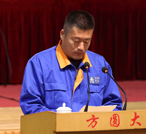 “烟台市创新创优劳动和技能竞赛建功标兵”荣誉获得者、运输有限公司叉车工王玉涛发言