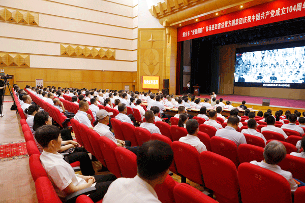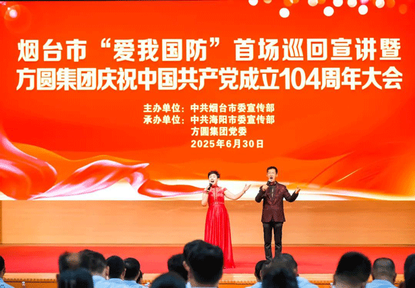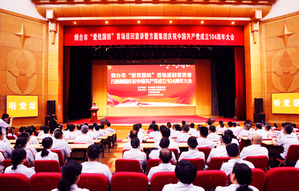 6月30日下午,烟台市“爱我国防”首场巡回宣讲暨方圆集团庆祝中国共产党成立104周年大会在方圆会议中心举行。烟台市委宣传部、海阳市委宣传部相关负责同志,有关区市党委宣传部科室负责同志,烟台市优秀宣讲员代表,方圆集团全体党员、管理人员、青年职工代表参加活动。方圆集团党委副书记、工会主席汪新军主持大会。