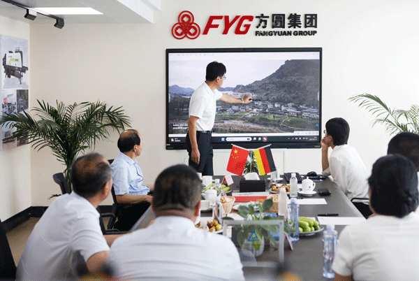 在方圆集团相关负责人的陪同下,Kemmann先生一行先后参观了集团主要生产车间、核心制造流程及多款成型样机,对方圆集团的生产工艺、产品质量及研发能力给予了高度评价:“FYG is still an amazing company with a great setup for the batching plant business. Hope we can do more business together in future”这是继2013年Kemmann访问方圆集团之后时隔十二年的又一次到访,与方圆集团员工全程德语互动也给其留下了深刻印象。