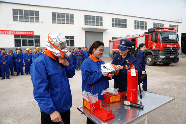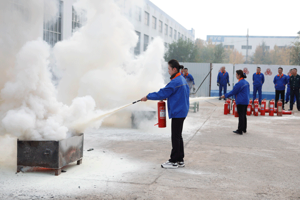 参演人员对灭火器的使用和灭火技巧进行实战演练。